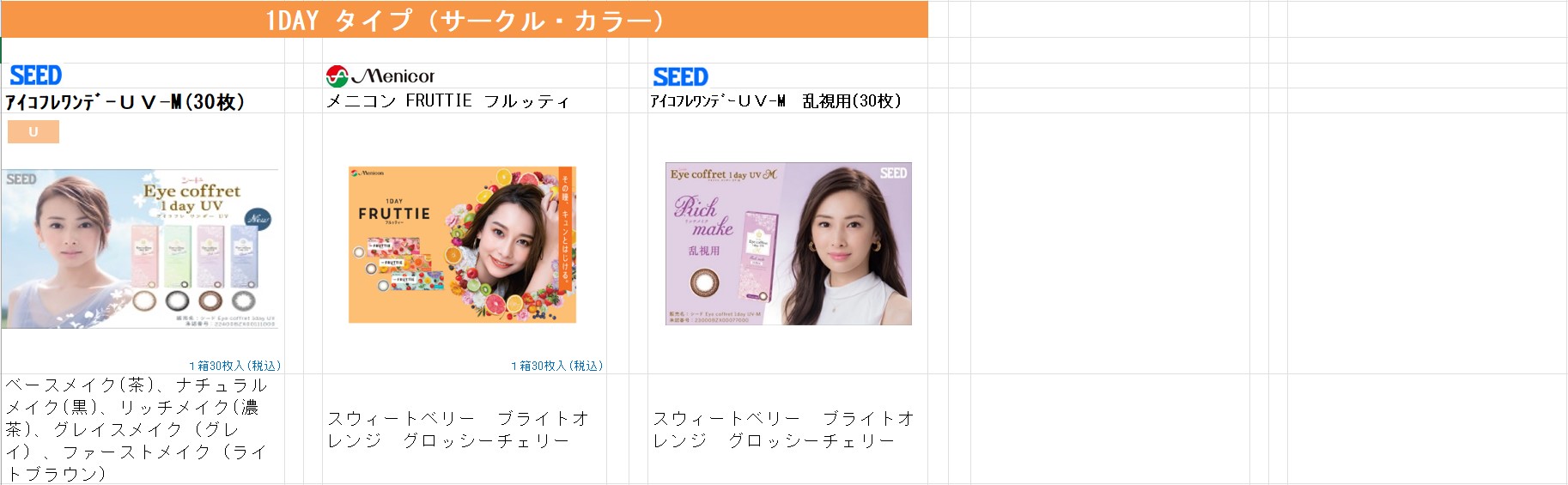 (2,550 – 3,450円/30枚入り 遠近両用:3,450 – 3,700円/30枚入り, 一部レンズにお得な90枚入りもあります)