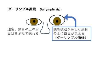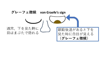 まぶたの腫れや瞼裂開大、眼瞼後退が起こります。甲状腺ホルモンが高値の場合、正常化すると改善することがあります。また、活動性のときにはステロイド(ケナコルト)局所注射などが有効の場合もあります。